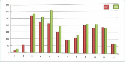 以上重點對09年、10年兩年的會從開展日期進行了一些分析,目的是為主辦商朋友和場館的同行提供一些參考,這些數(shù)據(jù)是來自我們多年來收集的數(shù)據(jù)庫(您也可以上haozhanhui.com看看您的展會是否在,是否準(zhǔn),是否全,您還可以自主添加修改)。可能有不準(zhǔn)的地方,但我們這么干已經(jīng)多年,經(jīng)驗告訴我們,錯誤率不高了。因此我們的結(jié)論還是有相當(dāng)可信的地方。