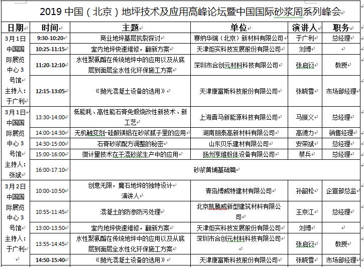 為加快地坪行業(yè)新技術(shù)、新材料、新工藝的推廣和應(yīng)用,增進(jìn)地坪與砂漿行業(yè)的跨界合作與交流,展會(huì)期間組委會(huì)將聯(lián)合中國(guó)室內(nèi)裝飾協(xié)會(huì)施工委員會(huì)、中國(guó)砂漿網(wǎng)等機(jī)構(gòu)共同舉辦2019中國(guó)(北京)地坪技術(shù)及應(yīng)用高峰論壇暨2019中國(guó)(北京)砂漿與地坪合作交流大會(huì)。具體議程如下: