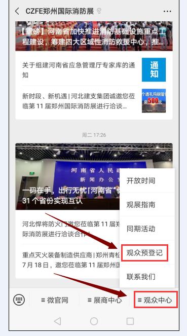 點(diǎn)擊【觀眾中心】——進(jìn)入【我要參觀】進(jìn)行觀眾預(yù)登記;